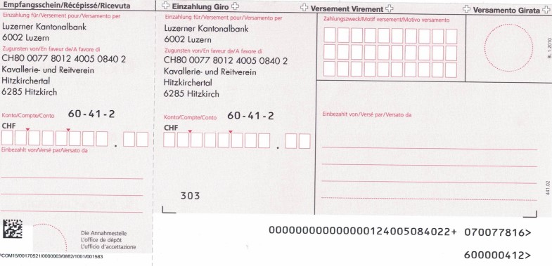 Zugunsten von: Kavallerie- und Reitverein Hitzkirchertal, 6280 Hitzkirch